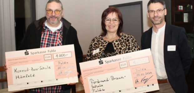 Eine große Freude bereitete der TechHub e.V. beim Jahresauftakt-Event: die Beruflichen Schulen Ferdinand-Braun-Schule Fulda und Konrad-Zuse-Schule Hünfeld erhielten vom TechHub-Geschäftsführer Christian Vey einen Spendenscheck über 1000€ überreicht, der für die Realisierung von Tech-Projekten eingesetzt werden soll.