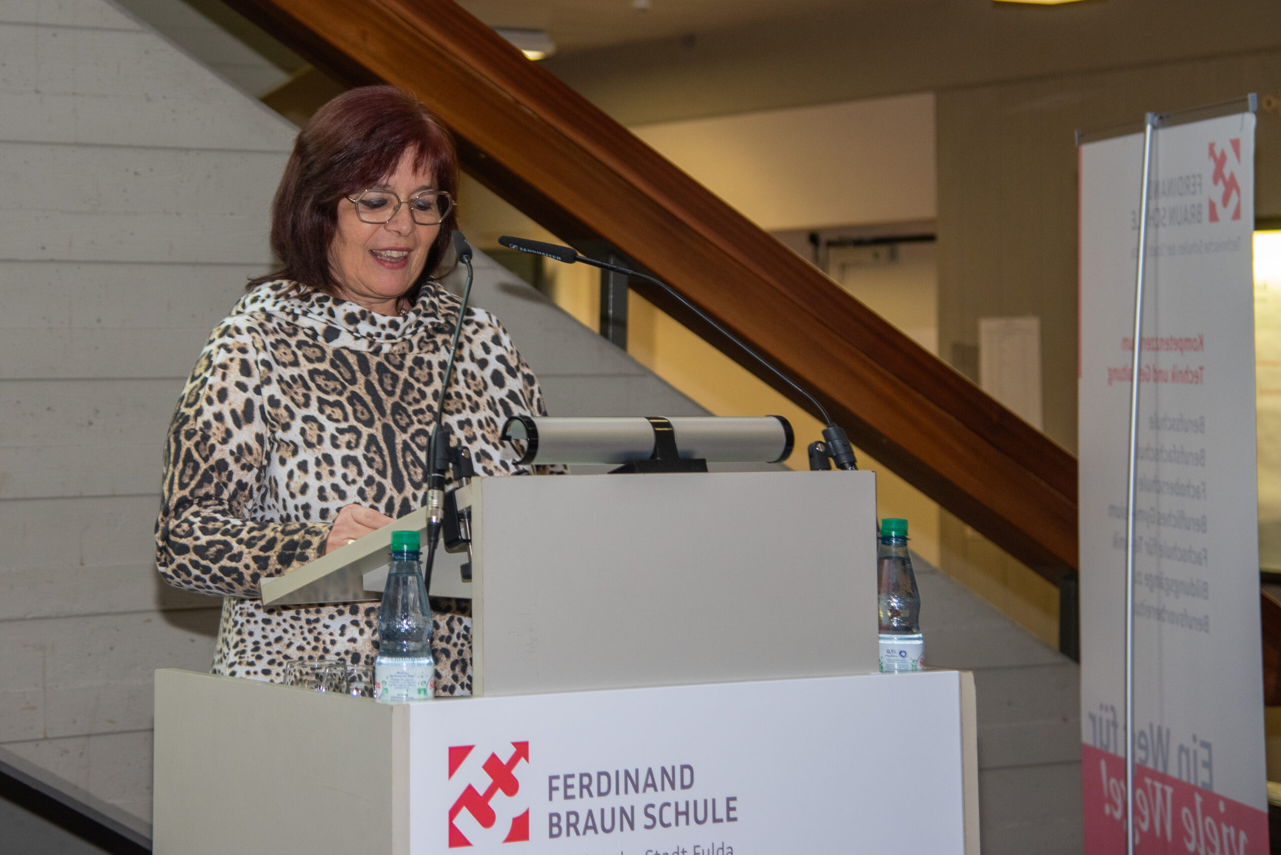 Jede Absolventin und jeder Absolvent ist individuell und durch das Engagement sowie die bestandene Prüfung zu einem wertvollen Beitrag für die Gesellschaft geworden, führte Oberstudiendirektorin Ulrike Vogler weiter aus. In Ihren Dank bezog sie die Ausbilderinnen und Ausbildern, Lehrerinnen und Lehrern sowie Partnern aus IHK, Kreishandwerkerschaft und Innungen mit ein. Des Weiteren betont sie die Bereitschaft der Ferdinand-Braun-Schule weiter für die Wertsteigerung der Absolventinnen und Absolventen zu sorgen und wünschte Ihnen auf Ihrem weiteren Lebensweg alles Gute und Gottes Segen.