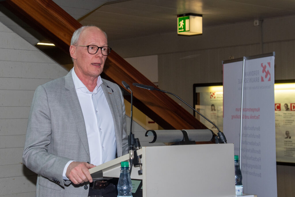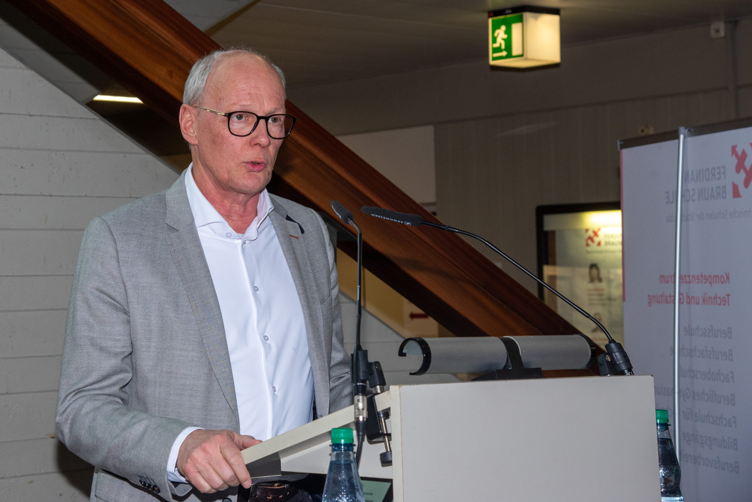 Dr. Christian Gebhardt, Präsident der Industrie- und Handelskammer, würdigte den Ort der Berufsschule als zweites zuhause, an dem der Abschluss durch Einsatz, Durchhaltevermögen und Mut erreicht wurde. Er betont, dass ein beruflicher Abschluss nicht selbstverständlich sei und neue Chancen in einer sich rasch verändernden Arbeitswelt biete. Die heutige Generation bringe Flexibilität, digitale Kompetenz, Teamgeist und Lernbereitschaft mit, um globale Herausforderungen zu bewältigen.