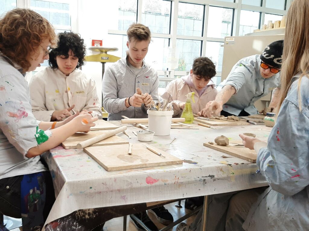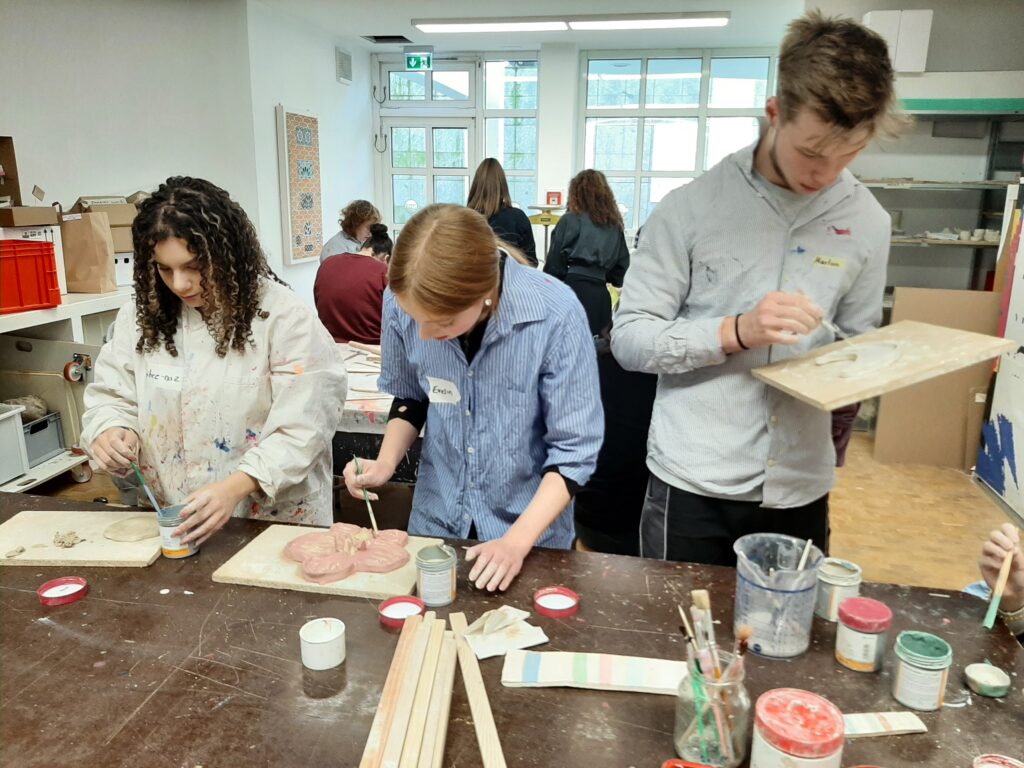 Die Klasse 12FOG1 besuchte mit ihrem Klassenlehrer Marius Laibach am 18.12.25 im Rahmen einer eintägigen Exkursion das „museum angewandte kunst“ in Frankfurt. Neben der Besichtigung der aktuellen Ausstellung stand die praktische Arbeit in der Werkstatt des Museums auf dem Programm.