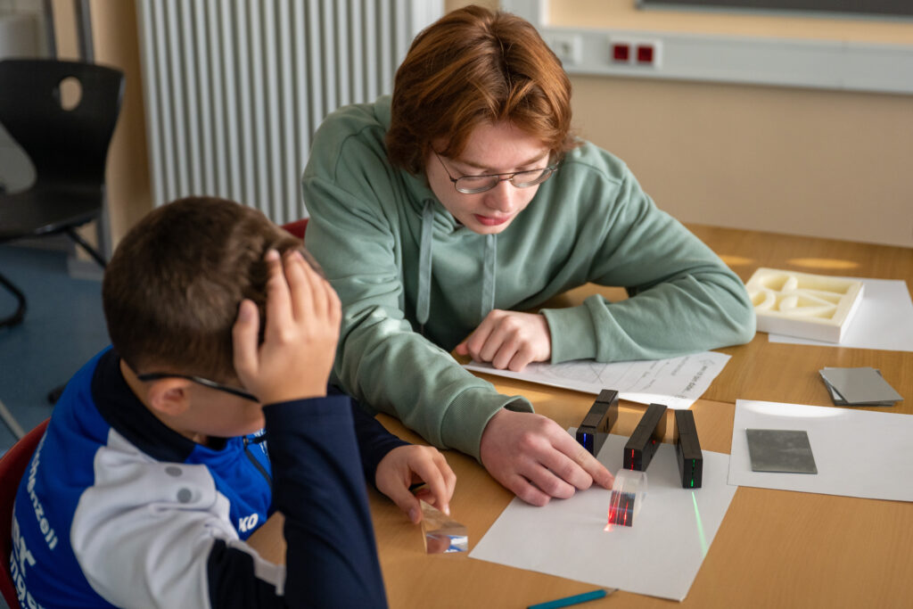 Mit großem Engagement und leuchtenden Augen beteiligten sich die Grundschülerinnen und Grundschüler an verschiedenen physikalischen Experimenten. Besonders interessant war dabei die Arbeit an der Grundlagenforschung zu magnetischen Feldern für eine Wirbelstrombremse. Unterstützt wurden die jungen Gäste von Schülerinnen und Schülern des Beruflichen Gymnasiums, die sie während der Experimente begleiteten und anleiteten.